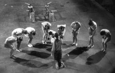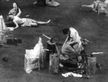 Zum Stück:Eine geschlossene Fabrik, die keine Arbeitsplätze, keine Zukunftsperspektive mehr bietet, eine Discothek, die stattdessen dröhnende Ablenkung liefert, Vergessen und Ekstase. Das ist der Rahmen! Das ist der symbolisch verengte Lebensraum der Jugendlichen in dem sich Geburt und Tod ereignen. Und die Liebe! Und die Liebe? Man hat nun alle Zeit der Welt, sich damit zu beschäftigen. Alleine oder unter den Augen der Öffentlichkeit. Liebe scheint dabei die einfachste Sache von der Welt zu sein! Jeder hat offenbar eine ganz klare Vorstellung davon, was Liebe ist! Aber jeder muß auch eine eigene Vorstellung haben, weil es keine allgemeingültigen Vorstellungen mehr darüber gibt, an denen man sich orientieren könnte oder gegen die man sich zur Wehr setzen müßte. Alle kennnen zwar alle Details der Liebe, aber keiner kennt den Sinn des Ganzen. Und so machen sich die Jugendlichen also auf die Suche nach der Liebe. Allein gelassen, versucht jeder seine Vorstellung in eine "liebevolle" Realität umzusetzen. Scheitert er dabei, was soll's, dann wird es eben nochmal probiert. Schneller, öfter, flacher! Nur nicht zuviel Herz investieren! Irgendwann wird es schon mal klappen. Und bis dahin nur keine Schwäche zeigen. Alle schauen dabei zu, na und? Es hat überhaupt nicht weh getan! Und schon stürzt man sich wieder in die Hektik des Geschehens, immer wieder, immer wieder. Bis zur Erschöpfung. Vielleicht weiß man ja irgendwann einmal genau, was Liebe ist... | |||||